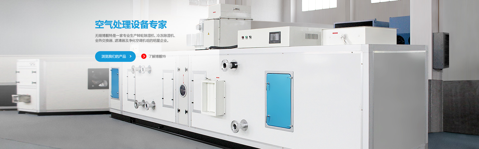 無錫博靚特空氣處理設(shè)備有限公司是一家專業(yè)生產(chǎn)轉(zhuǎn)輪除濕機、冷凍除濕機、恒溫恒濕機、全熱交換器、新風(fēng)處理機及凈化空調(diào)機組的明星企業(yè)。 公司座落于中國長三角的中心城市——江蘇省無錫市。公司背鄰太湖,旁倚錫宜高速和…